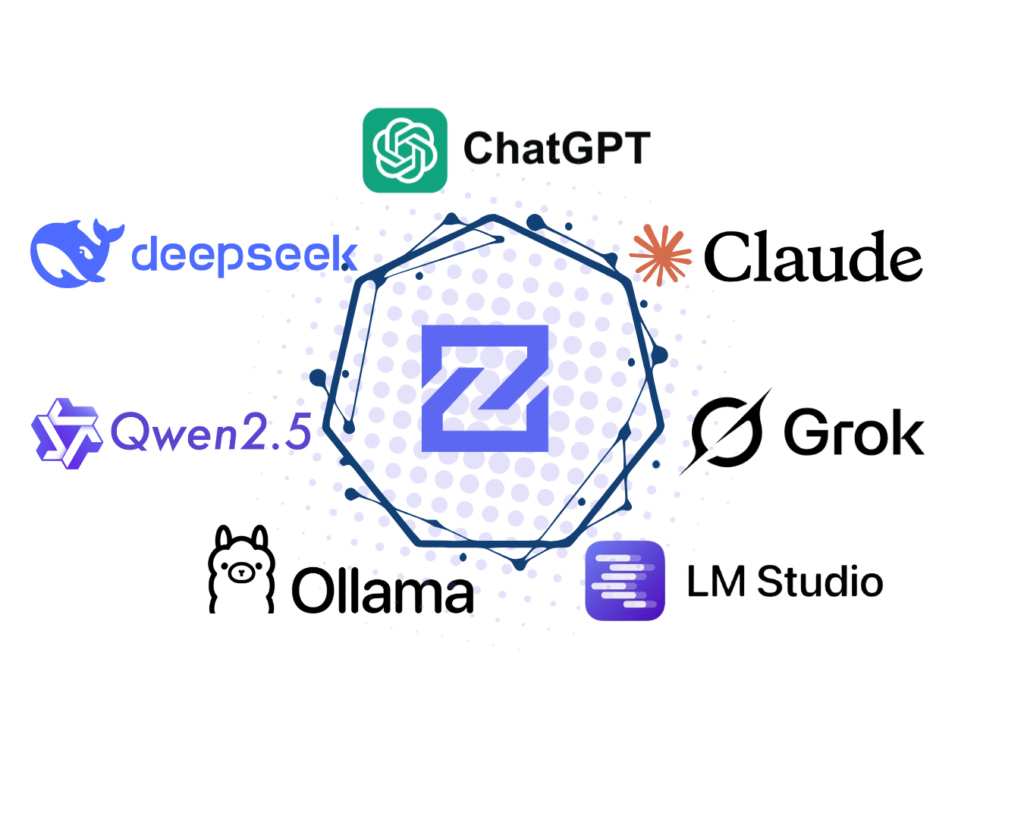 Conexão direta com Chat GPT, Gemini, Claude, Grok, Deepseek, Ollama, Qwen e LM Studio para soluções open source no seu próprio servidor.
