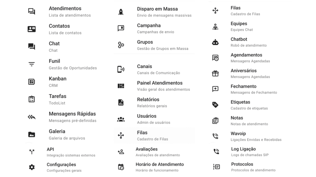 Um sistema completo de chatbots, I.As, automações e gestão de atendimento com multiusuários para WhatsApp e vários outros canais de conversa.
